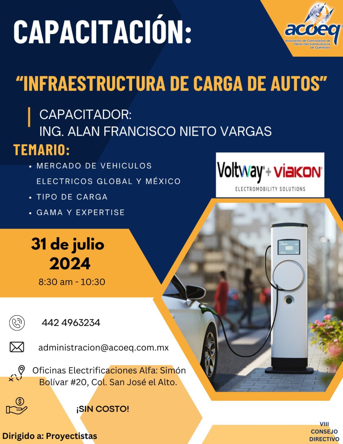 Se les hace la invitación al curso Infraestructura de Carga de Autos por parte de nuestro Asociado Colaborador de VIAKON .