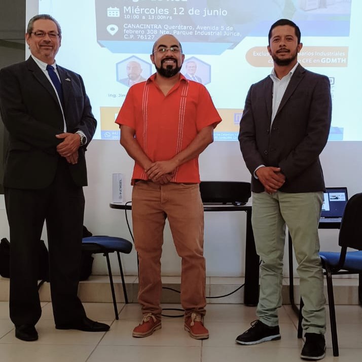 Fuimos invitado por parte de nuestros Asociados Activos el Ing. Juan Jimael Hernández representante de la empresa Vinculo Solar y el Ing. Carlos Suarez representante de la empresa Capacitación e Ingeniería Energética CIE al curso «Soluciones legales y técnicas para cumplimiento con Código de Red» en CANACINTRA Querétaro.
